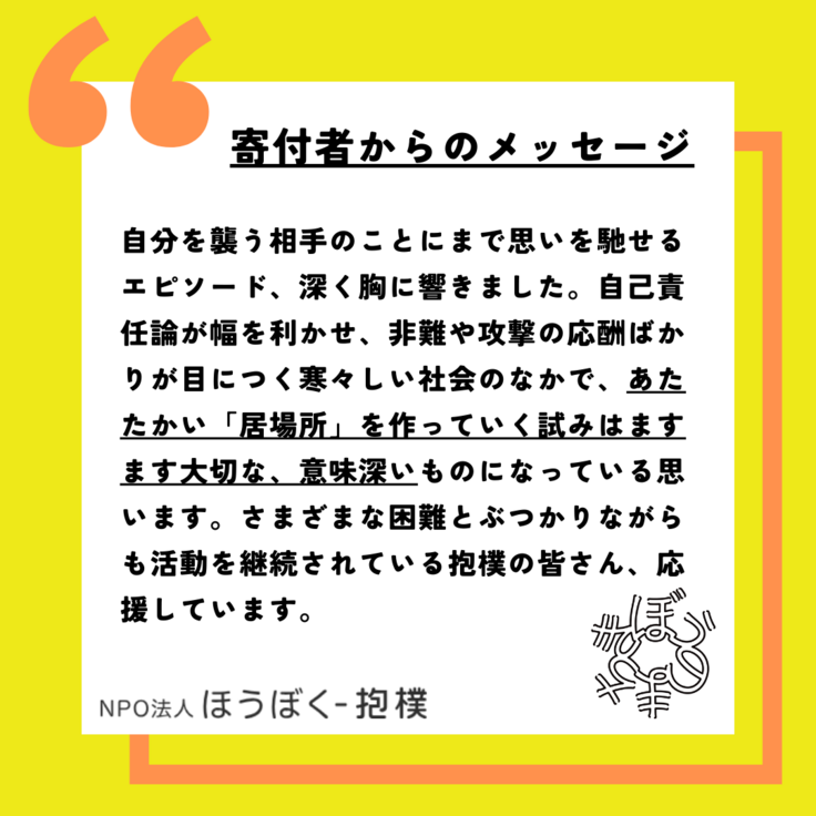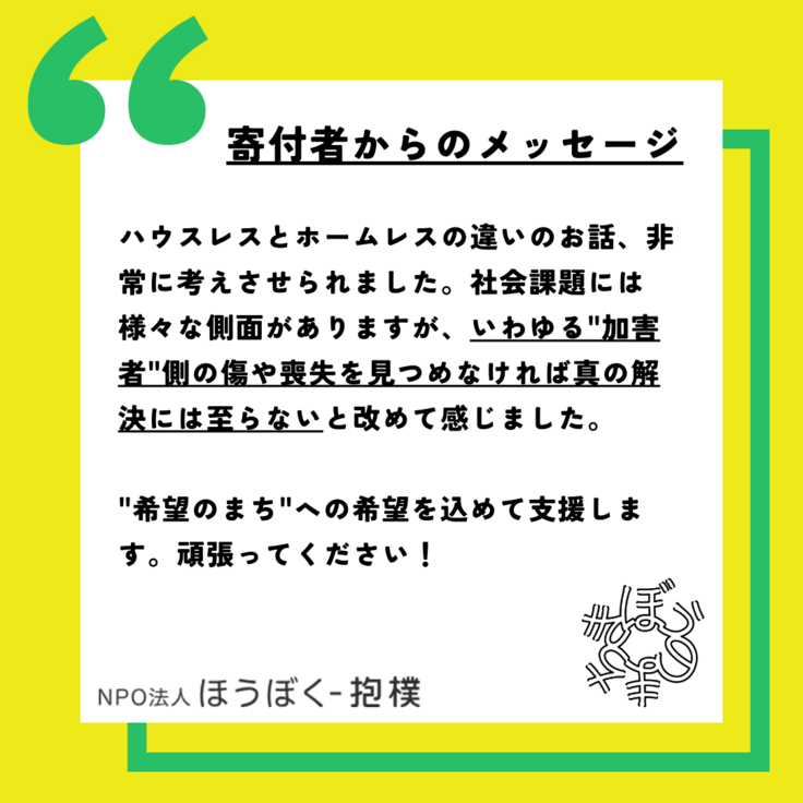 〈希望のまちや抱樸の取り組みを通じて社会が変わっていくことを応援してくださる声〉