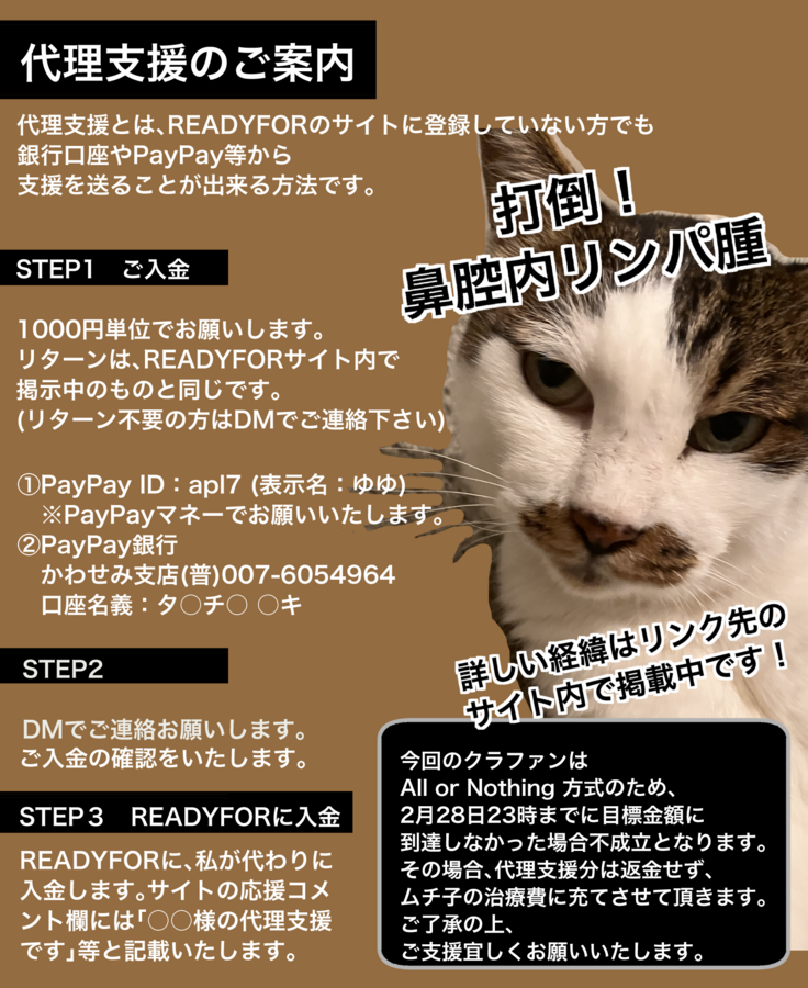 猫伝染性腹膜炎を患ったポンちゃんの明日をつないで頂けないでしょうか