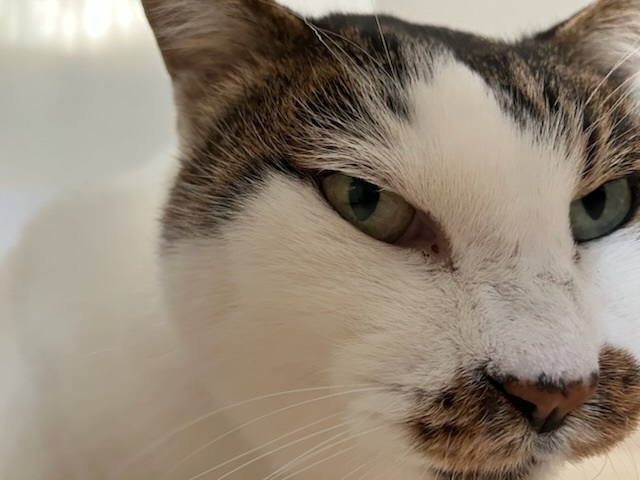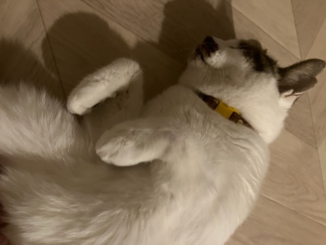 そして、本日のムチ子は、構って欲しくてナデナデ常時待機モードです。クシャミや鼻水もなく、カリカリも少しずつですが食べてくれていて、調子は上向きのようです。
