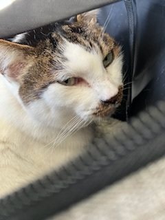 鼻腔内リンパ腫の原因は不明ですが、排気ガスや受動喫煙が疑われているらしく、ムチ子が野良時代に縄張りとしていた場所は、そう言った意味でも最悪の環境でした。夏は毎日光化学スモック注意報が出るにも関わらず車の通りが多い大通りを横断し、古びたビルの飲食店の休憩所にも入り込んでいて、そこで何を吸い込んでいたのかと。あのボイラー付近では、カビやサビなども、沢山吸入していたと思います。私は肺の心配ばかりしていたので、鼻腔と聞いた時は自分の思慮の無さを呪ったものです。