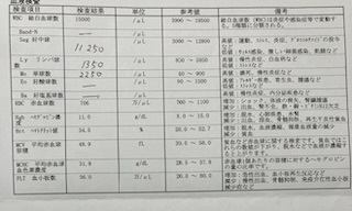 先週のと比較すると明確なのですが、血球数が減るどころか増加に転じていて、メソトレキセートが効いていなかったことがよく分かる結果となりました。