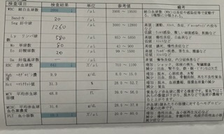と言われました。どうやら、好中球数の減少具合が著しく、血小板数もギリギリとのこと。そんな今回の血液検査結果はこちらです。↓