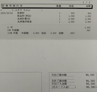 ムチ子はまだ副作用グレード2の状態なので、回復を待つことになり、3日後の金曜日に再度血液検査し、好中球数が2000以上まで回復していた場合、その日にビンクリスチンを投与します。