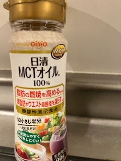 最後に日清のMCTオイル数滴。MCTオイルについては、日清のHPに詳しく説明があります。
