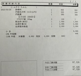この状況を先生に伝えましたが、先生の見立てでもムチ子は元気を取り戻しつつあるようだったらしく、今週はビンクリスチン行けそうだねと話をして、血液検査に移りました。