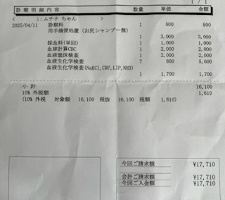 こちらが今回と先週日曜日の緊急受診時の明細書です。