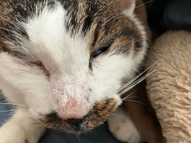 今朝には鼻汁も完全に止まり、先月のACNU投与後から続いていた鼻汁から解放されたムチ子は、疲れ切ったように窓際で放心状態ですが、意識はちゃんとあり、私の声には反応してくれます。