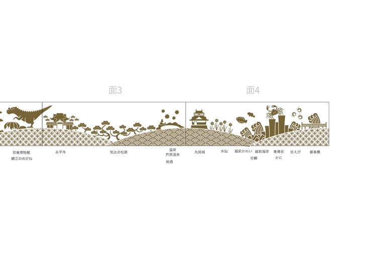 本企画は、「福井の玉手箱」シリーズとして取り纏める予定です。パッケージは後々小物入れとしても使える、記念品として残していただけるように缶素材とします。缶のデザインでは新幹線開業記念のロゴマークを表面に入れ、側面に県内の特産品・名所を散りばめ見て味わっていただけるパッケージに仕上げてまいります。「福井の発見・再発見」「ワクワク」を詰め込んだパッケージを共有し、そして企画に賛同、名称の掲載許諾をしていただいたお菓子屋さん4社(新珠製菓株式会社さま、株式会社五月ヶ瀬さま、株式会社西洋菓子俱楽部さま、株式会社甘泉堂さま)にそれぞれ各社ご自慢の逸品をギュッと詰め込み、1社1品にて4種類を商品化予定です。それぞれのロゴマークをスリーブに箔押して差別化します。 販売先は延伸を記念して福井県内の4駅を中心とした駅ナカ限定の販売を予定しております。県内の皆様にも来ていただきたい県外の皆様には福井をお持ち帰りいただきたいと考えております。