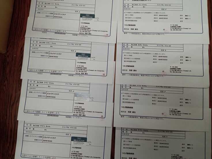 子猫4匹のウィルス検査とワクチン接種を行いました。14匹全てエイズ白血病陰性です。