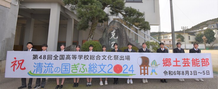 今年の夏、岐阜県で開催される「第48回全国高等学校総合文化祭」(清流の国ぎふ総文2024)のロゴを利用した横断幕が完成し、先日、内子高校に到着しました。