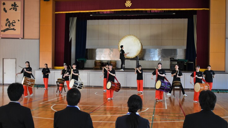新任の先生方にも、毎日鳴り響く和太鼓の音に早く慣れていただいて、新しい高校での新しい生活が明るく楽しいものになりますように、ともに歩んでいきたいと思います。