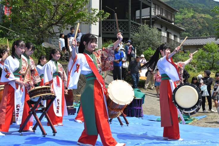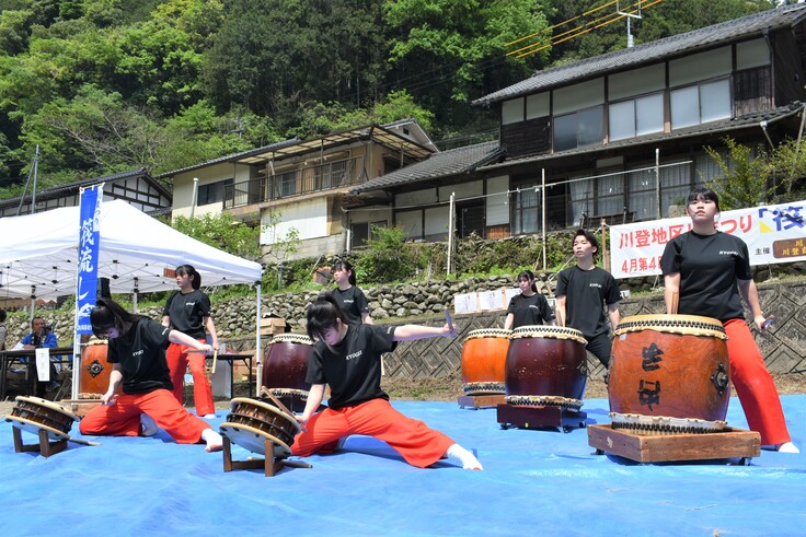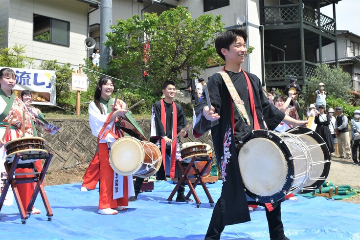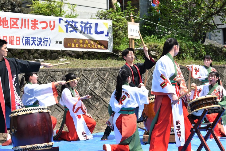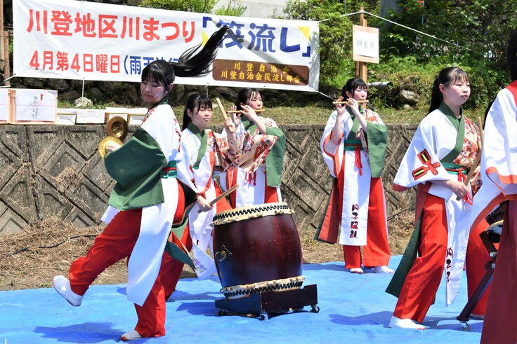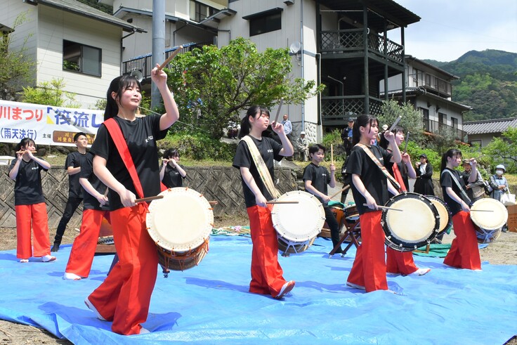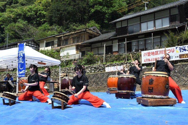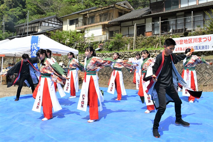 昨日(4月28日)、内子町の伝統行事「川登川まつり・筏流し」が開催されました。今年も晴天に恵まれ、郷土芸能部も昨年に続いて参加させていただきました。会場の楽しい様子を写真で振り返ります。