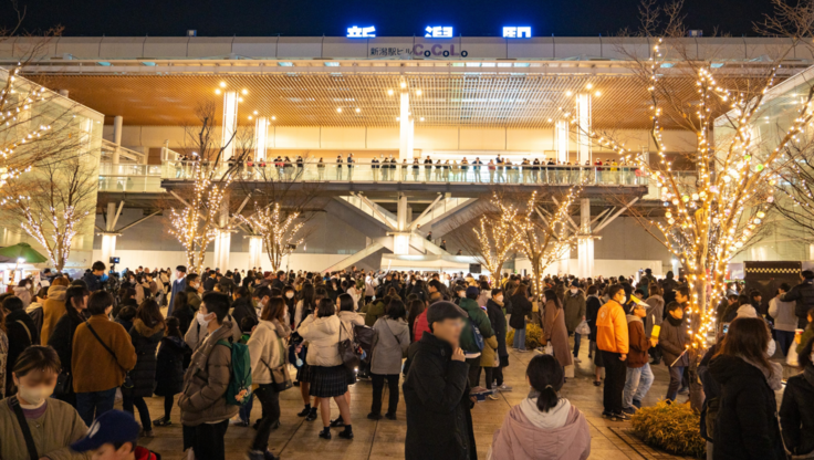 その後、「最終新幹線で新潟駅へ着いたとき、真っ暗な中、寂しい気持ちで新潟の地に降り立って欲しくない」という願いも加わり、イルミネーションの点灯時間は24時過ぎまで延長されました。