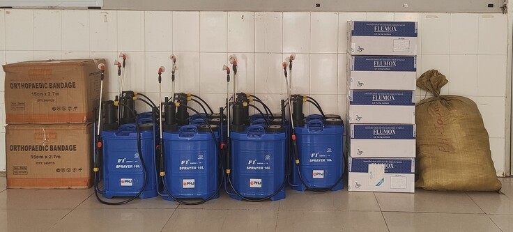 加えて、この緊急事態下において、中央から定期的に供給される郡病院および地域保健センターの必須医薬品の供給が滞り始めており、レウェイ郡内の医療施設にて一部の医薬品・消耗品のストックが少なくなってきています。レウェイ郡病院からの要望を受け、注射用の感染症抗生物質、包帯、輸液セット等を供与ました。