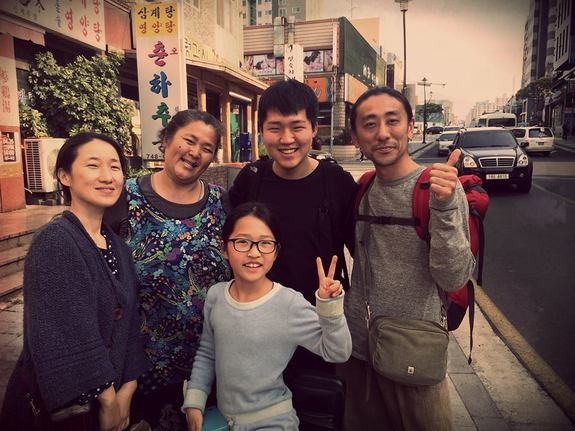 (楽しい仲間たち。アノーシェ、ドンヒー、寒平、ヒジョン、ヒジョンの娘シャーマ。)