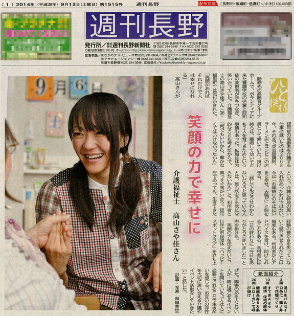 今日9月13日 代表について地元紙「週刊長野」に掲載頂きました。