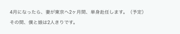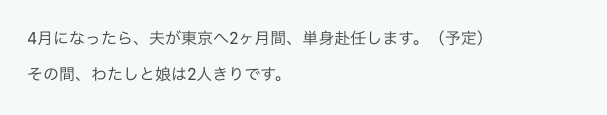 「お子さんを連れて、東京に行くんですか?」なんて言われたこともあった。子連れで単身赴任したら、向こうで何もできないよ、と思う。