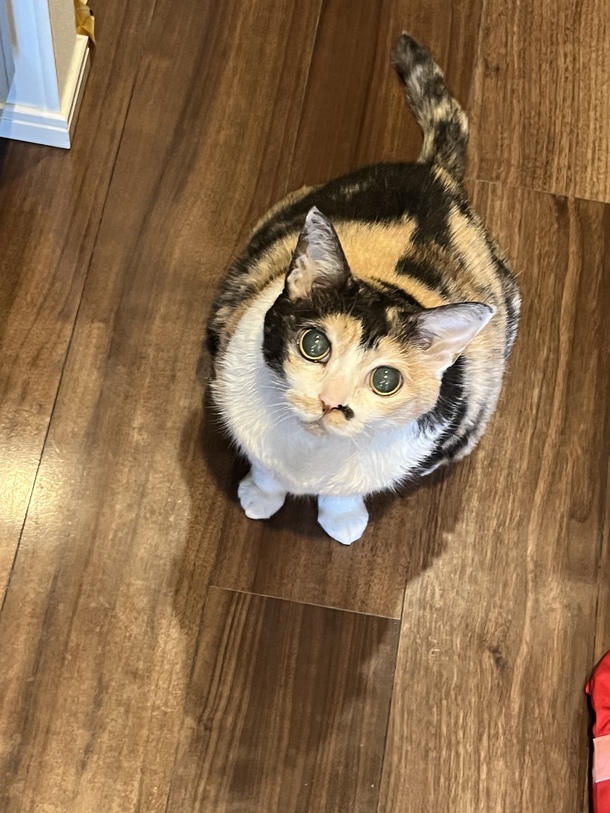 (写真は台所で洗い物をしていたら大好きなおやつをもらえると思って期待に満ちた目で見つめてきた今日のみーちゃんです)