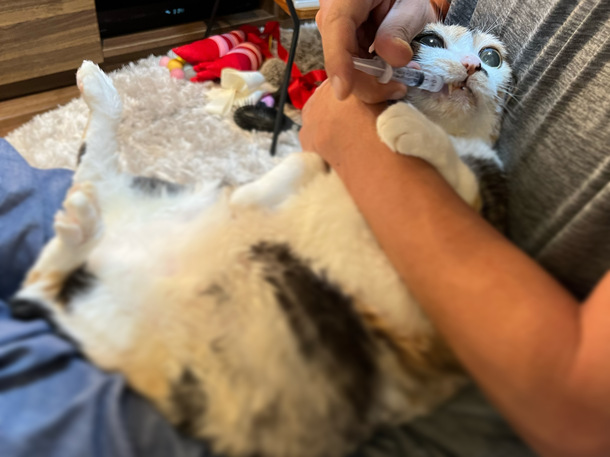 (パパは注射ができず、ママはグリセリンを飲ませるのが苦手です)