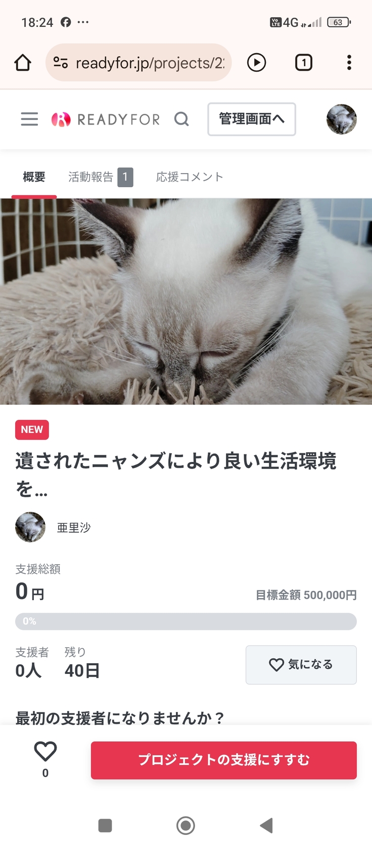 猫伝染性腹膜炎を患ったポンちゃんの明日をつないで頂けないでしょうか