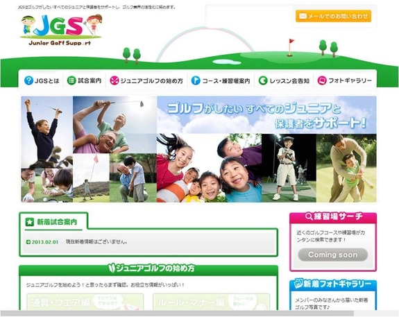 はじめまして!JGS(ジュニアゴルフサポート)の坂本雄一と申します。私は、JGSに所属のPGA(日本プロゴルフ協会)トーナメントプロとして試合にでながら、子供たちにゴルフレッスンをしています。JGSは、子供たちがゴルフをしやすい環境を作ることを目的として、ジュニアゴルファーとその保護者をサポートするために、ジュニア特典のあるゴルフ場の紹介や、ゴルフのルールやマナーが覚えられるコンテンツを用意したWebサイトを来年4月に開設します。プロゴルファーによるゴルフレッスン動画なども掲載し、分かり易く、楽しいサイトを作るためプロジェクトを立ち上げました。