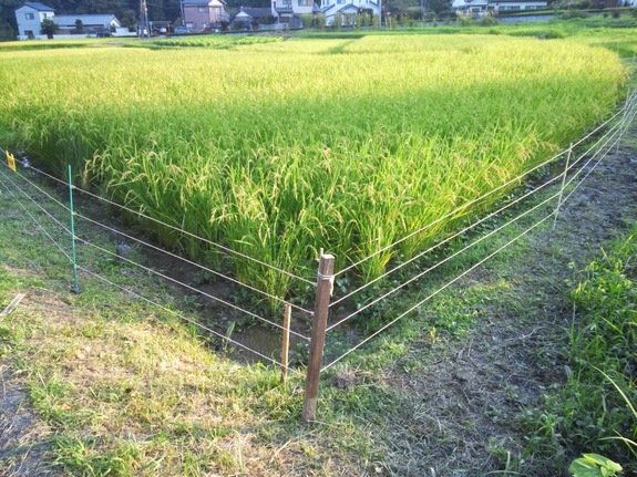 そして、近年とくに困っているのがイノシシです。秋になると周囲の山から里に降りてきます。今年も稲刈り直前の田んぼに入られたため、急遽、電気柵を設置しましたので大きな被害は受けずにすみましたが、近隣の田んぼでは、はざ掛けしてある稲が食べられてしまったところもあります。