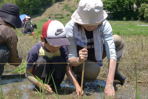 6月まで苗床ですくすくと育ったたくさんの稲の子達は、一本一本、みんなの手で大切に、田んぼに植えられていきました。大人たちも子供たちも、みんな腰をかがめながらも一生懸命に、植えてくださいました。本降りの雨の中、田植えをしたときもありましたね。