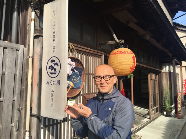 みくに園さんは、UDCS事務所から徒歩30秒(?)のご近所にある盆栽屋さんです。店舗に利用されている建物は、江戸後期の建築と言われている町家をリノベーションされたもので、UDCS事務所の建物と同様、三国の民家の特徴である「かぐら建て」。地元の人や観光に訪れた人に対して、古くからの町家の雰囲気と共に盆栽の魅力を発信されており、子どもから大人まで気軽に楽しめる盆栽ワークショップは、とくに若い女性などに人気です。