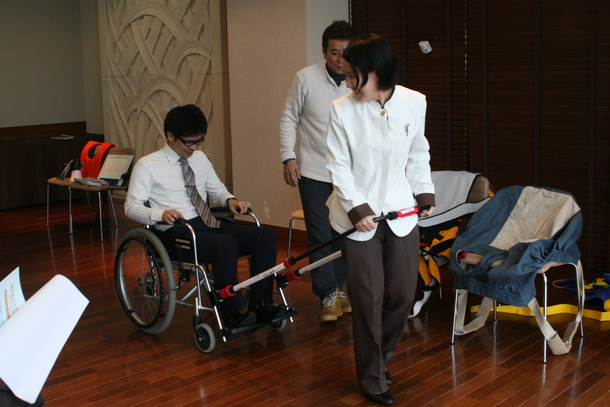 しょうがい者・こうれい者観光案内所を運営する傍らで、これまで様々な関連事業を行ってきました。「観光バリアフリー普及・啓発事業」「観光バリアフリーマニュアルの作成」のみならず、「スポーツ施設バリアフリー情報冊子の作成」、「食のバリアフリーマップ」、「乳幼児バリアフリーマップ」、「障がい者等専用駐車場調査」、「パラスポーツコンベンション」などです。そのなかでも、近年力を入れているものの一つが「逃げるバリアフリー」の取り組みです。