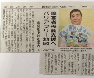 「えきペディア 福岡」は、こうした縦方向の移動をわかりやすく表示したマップです。出口までの導線だけでなく、トイレの情報やさらには、周辺の観光施設のバリアフリー情報も掲載しています。そして、付録に郵便局のバリアフリー情報を掲載しました。この取り組みは西日本新聞でも取り上げて頂きました。今後も、公共交通機関を利用した移動に関するバリアフリー情報を充実させていきたいです。