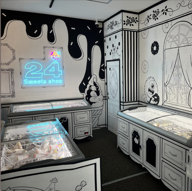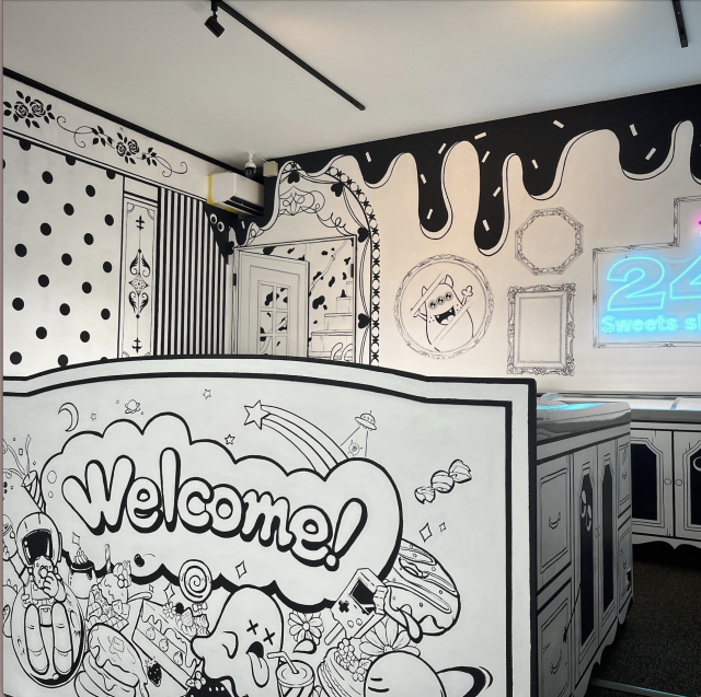 店内は白黒の線で描かれた「2Dアート」が広がっており、“アートが体感できる”というコンセプトを持った店舗というコンセプトで立ち上げました。