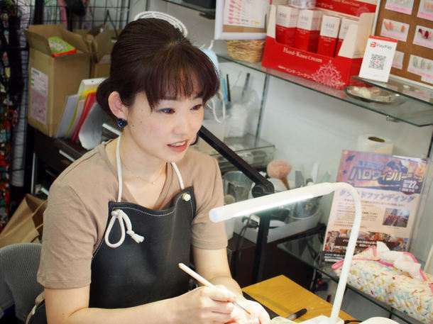 いまは、主人の祖母が戦後始めた「みねたや」という化粧品屋で主人の母と一緒に働いています。第一子出産後に前から興味があったネイルの資格を取得し、今では同年代の主婦層を中心に同店舗内で毎日楽しくジェルネイル施術をしています。