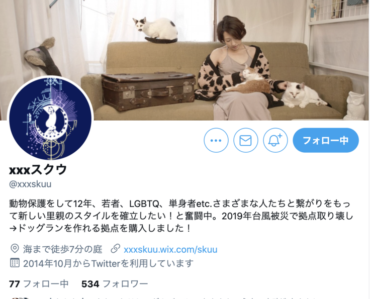 私は動物が大好きなのですが、残念なことに住宅環境の問題から人生の中で共に暮すことは叶っておりません。保護動物団体「XXXスクウ」の代表である永久さんとトウトさんに、ひょんなきっかけで出会いSNSを通じて普段の様子を拝見しておりました。