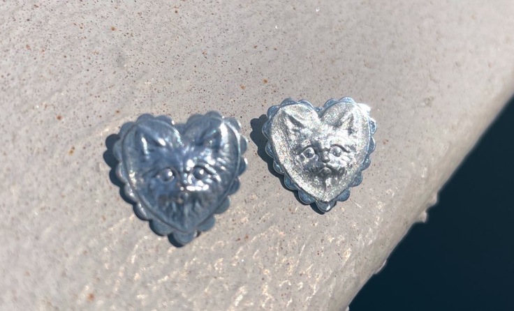 今回のデザインテーマは「猫ちゃん大好きチュッチュッチュ」です。ハートと猫をドッキングし、CAT LOVEを表現しました。「寄付はしたいけどアクセサリーはいらない」という方に向けて、この企画の協力者の方からサービスをご提供いただいております。
