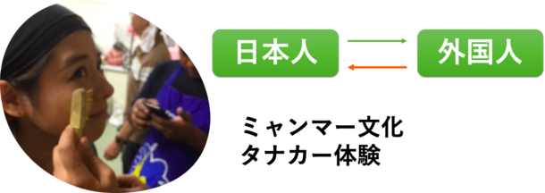 だんだんと時が経つにつれ、ふとした瞬間に外国人メンバーから、「私たちの国には食べるお茶があるんだけど知ってる?」などといった質問が来るようになり、「外国人が日本人に外国語・外国文化を教える」活動も増えてきました。ミャンマーの「食べるお茶」、タイ料理教室、中国語レッスンやストレッチ体操等、日本人のメンバーが彼女達に彼女達の国の文化を教えてもらうのです。日本人メンバーも、今まで知らなかったようなことをたくさん教えてもらいました。例えば、ミャンマーの文化でタナカーという白い粉を塗る文化があるのですが、このタナカーを塗ることで暑い地域でも涼しく過ごせます。