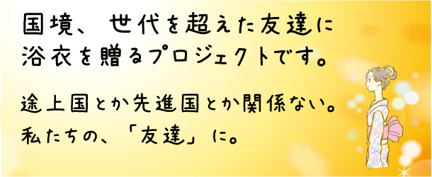 今の時代、インターネットは普及し、SNSでも繋がれます。簡単に繋がりは保てるけれど、「形としての共通の思い出」が、ないのは少し寂しい。何か形としての思い出を作ってあげられないかと考え、彼女たちを観察していると、お祭りや花火に行った時、日本人女性が着ている浴衣姿に興味を持ち、羨ましく思ったようです。