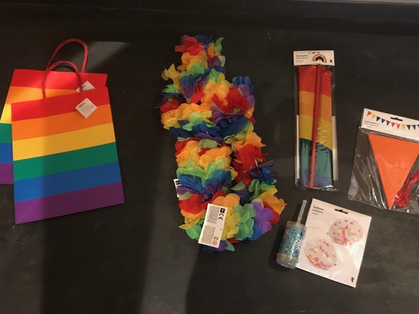 今月29日の鴨川ゴミ拾い、また10月12,13日のレインボーフェスタに向けて、レインボーグッズを探しに行きました。