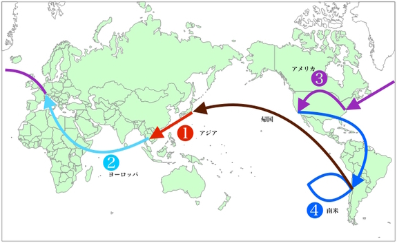 ④南米=チリ、ペルー、ボリビア、アルゼンチン(マチュピチュ、イースター島、ウユニ湖、パタゴニア等)