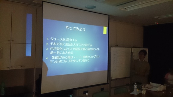 これまで、ぶどうジュースが酸性やアルカリ性(塩基性)に反応を示すことを利用して身近なものが酸性やアルカリ性といった性質を持っていることを調べる実験や、小石などを用いて泥水から水をろ過する実験などを行ってきました。