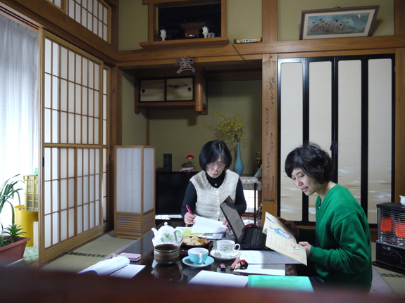 内容は文章の吟味です。現段階では、語りの雰囲気を残したくて、真室川の方言をできるだけ取り入れていましたが、絵本として読み聞かせるにあたり、真室川の訛りを知らない人には難しいだろう、ということで、今日はそれを日本全国どこの人が読んでも通じるよう、直せるところは直したり、どうしても変えたくない部分については注釈を入れることにしました。