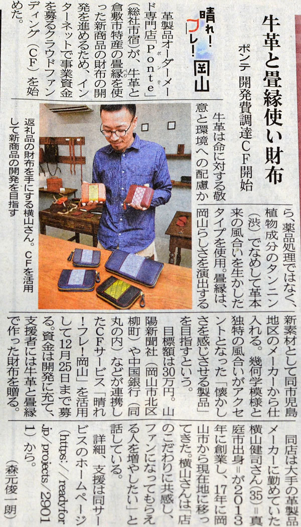 先日、山陽新聞に今回のプロジェクトを掲載していただきました。