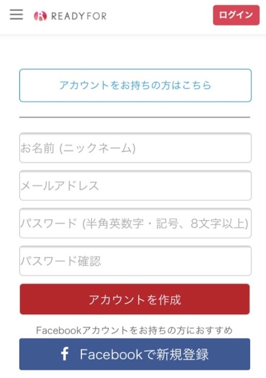 [アカウントをお持ちでない方はこちら]を選んだ場合