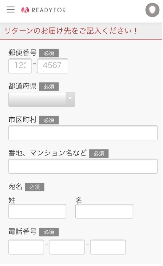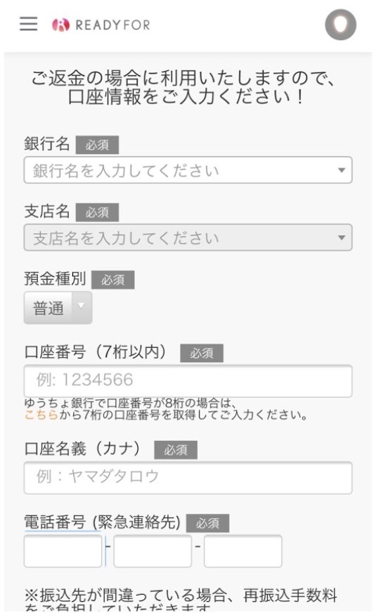 <ご返金先の口座情報>および<お届け先住所>を入力