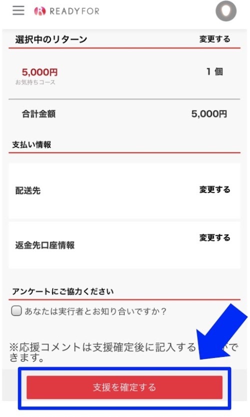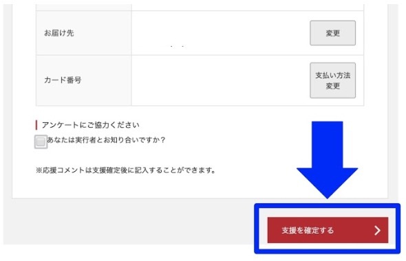 内容を確認し間違いがなければ[支援を確定する]をクリック