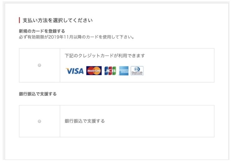 こちらは「銀行振込」でご支援をいただける場合のやり方です。