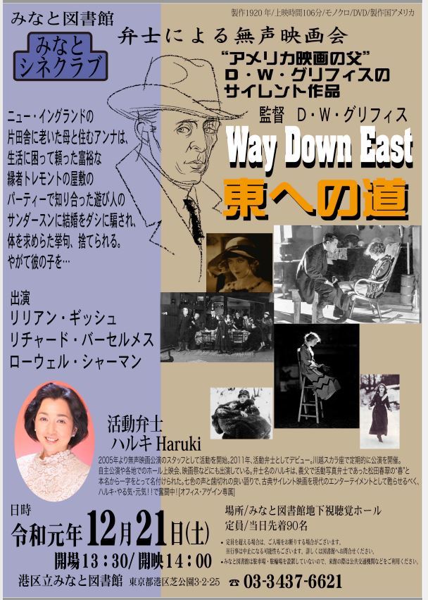 年の瀬の土曜日の午後、ハルキさんの活弁とサイレント映画にふれるひとときをいかがでしょうか😊