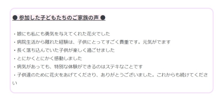 闘病に励む子どもたちに、笑顔と希望の「ゆめ花火」を!