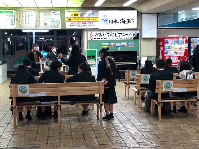 11/16 新着情報17 上市駅のベンチに地元高校生が座布団を進呈