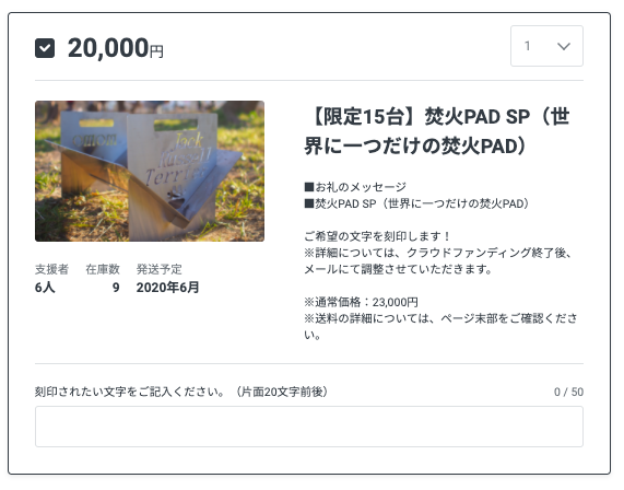 ※詳細については、クラウドファンディング終了後、メールにて調整させていただきます。