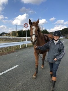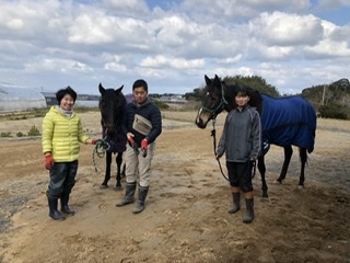 福岡は風が強く寒いなか、家が近所の高校生で馬術部の主将いちごちゃんと支援施設BemyselfからNさん。